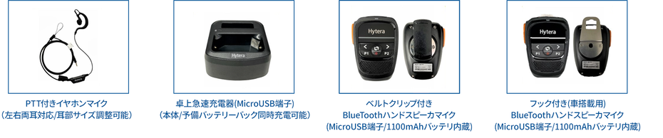 *オプション品: PTT付きイヤホンマイク、卓上急速充電器、キャリングケース